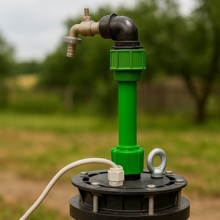 Хотя оголовок и является герметичным, рекомендуется устанавливать его на высоте 25-40 см над уровнем земли. Такое решение обеспечивает дополнительную защиту от попадания дождевой воды и паводковых вод в межсезонный период. Что касается труб, оптимальным выбором считается комбинированный вариант: использование металлических обсадных труб в сочетании с пластиковыми трубами.